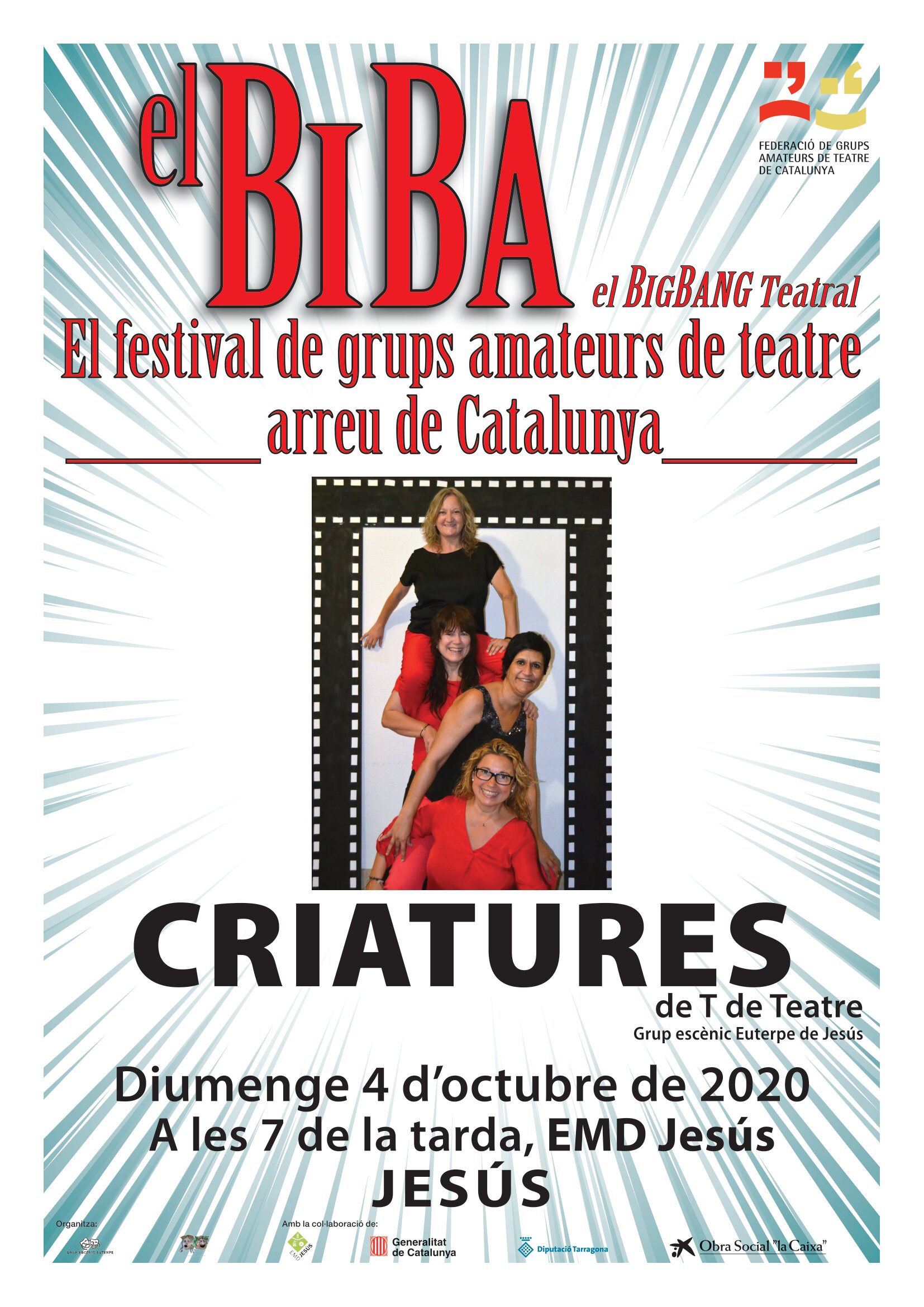 Diumenge 4 d'octubre de 2020, el Grup Escènic Euterpe, de Jesús, representarà l'obra Criatures de T de Teatre, a les 7 de la tarda, al EMD Jesùs, de Jesús.